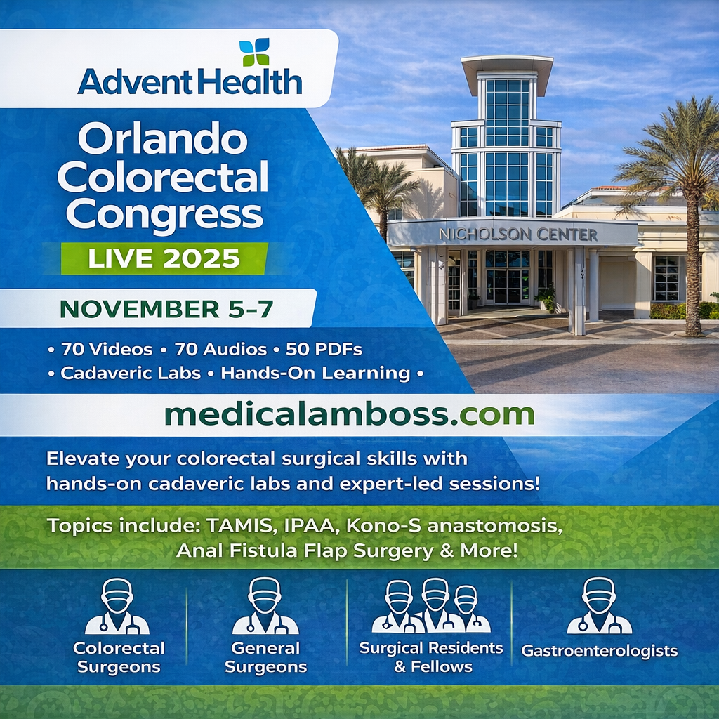 The AdventHealth Orlando Colorectal Congress Live 2025 is best for colorectal surgeons, general surgeons, surgical residents, and gastroenterologists who want hands‑on training in advanced colorectal techniques. It combines cadaveric labs, didactic lectures, and interactive sessions to strengthen surgical proficiency in complex procedures such as TAMIS, IPAA, Kono‑S anastomosis, and anal fistula flap surgery.