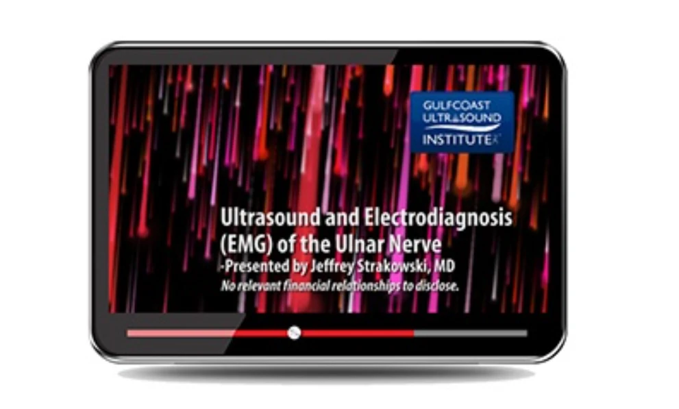 Ultrasound and Electrodiagnosis (EMG) of the Ulnar Nerve training video is designed to provide a comprehensive approach to the use of ultrasound for the assessment of the ulnar nerve and ulnar neuropathy at the elbow and other locations. The presentation is structured to review the nerve anatomy, clinical assessment, the relative value, and technical approach of routine electrophysiologic techniques, scanning techniques, and image optimization with ultrasound. In addition, the clinical basis for utilizing ultrasound for assessment of both normal / abnormal sonographic characteristics of the nerves, muscles, and other related anatomy is included.