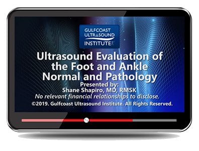 Gulfcoast: Ultrasound Evaluation of the Foot and Ankle: Normal and Pathology Training Video is designed to provide a review of anatomy, scan techniques, normal ultrasound characteristics, commonly seen pathology, and ultrasound diagnostic criteria.