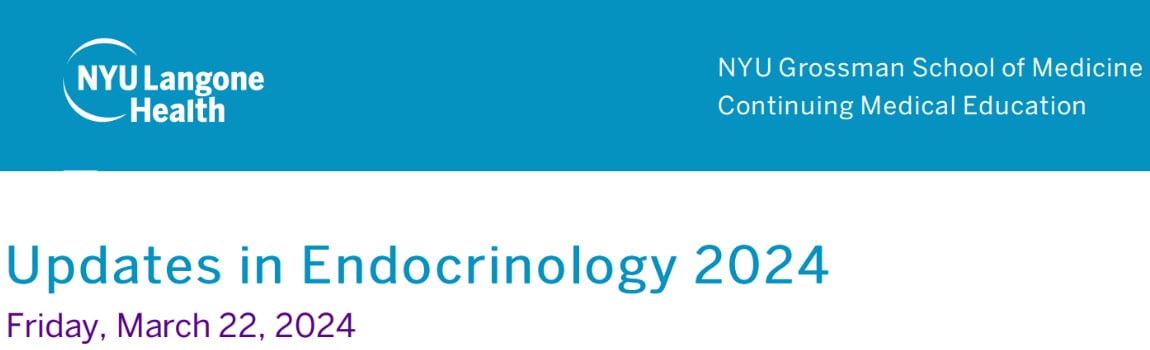 NYU Langone Health Updates in Endocrinology 2024 This conference will present the newest approaches and techniques in the diagnosis and treatment of neuroendocrine disorders, diabetes mellitus, bone and metabolic diseases, and thyroid disorders. Participants will leave with up-to-date practical information which will have widespread clinical application. This course provides a review of recent clinical guidelines and treatment strategies in the areas of growth hormone deficiency, diabetes, thyroid disorders, bone/metabolism, hormone therapy, and reproductive endocrinology.